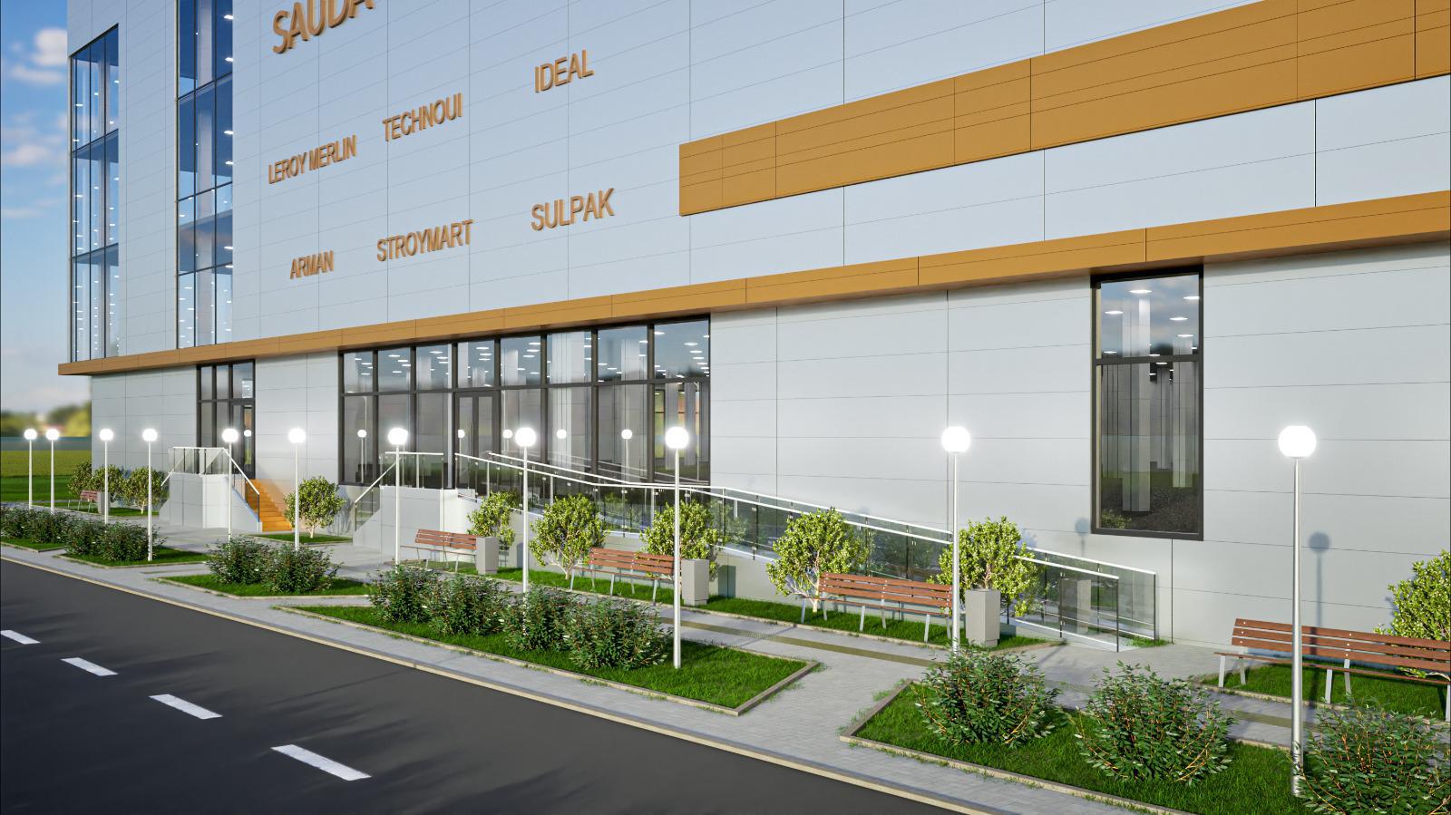 4-х-этажныйТорговый Дом с современным дизайном, который выделяется на фоне зданий старого формата. Спланированный под БЛОК Стройматериалов, Вещевой БЛОК, а также ОФИСНЫЕ помещения